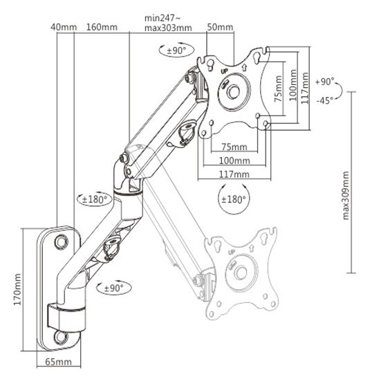 - Držák monitoru na stěnu s jedním ramenem monitoru