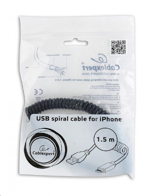 GEMBIRD Kabel USB A Male/Lightning Male, 1,5m, černý, kroucený