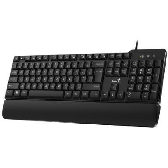 Klasická drátová klávesnice v černém provedení je navržena tak, aby uživateli poskytla maximální komfort při každodenní práci. Klávesnice je odolná proti polití a disponuje ergonomickou opěrkou dlaní. Připojení k počítači je realizováno skrze USB port.
