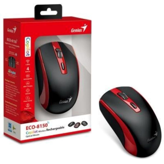 GENIUS myš ECO-8150/ 1200 dpi/ bezdrátová/ dobíjecí/ Copilot/ černo-červená