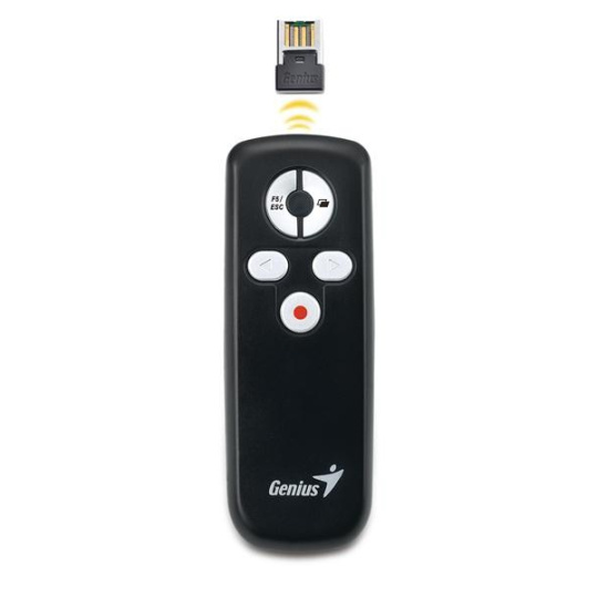 Zcela nová pomůcka Media Pointer 100 od firmy Genius je nejlepší nástroj pro použití při prezentacích. Pokročilá 2,4 GHz bezdrátová technologie poskytuje pracovní rozsah až 10 metrů bez interference. Je to užitečný nástroj pro schůzky, projevy či školení na cestách.