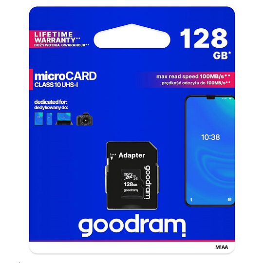 MicroCARD memory cards with UHS-I interface are ideal for modern devices. The fast UHS-I interface allows you to take full advantage of modern smartphones and tablets, and the adapter included in the M1AA set allows you to use your microCard also in devices with an SD card slot.
