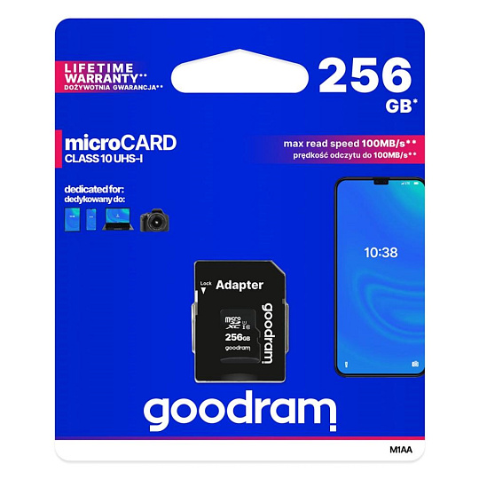 GOODRAM microSDXC karta 256GB M1AA (R:100/W:10 MB/s), UHS-I Class 10, U1 + Adapter