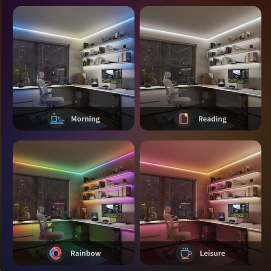Pásky vás budou dokonale provázet celým dnem. Mohou simulovat denní světlo ve všech denních dobách, vytvoří zdravé podmínky pro čtení, práci, Relax nebo zábavu. A pokud máte rádi party, od teď budete party milovat!