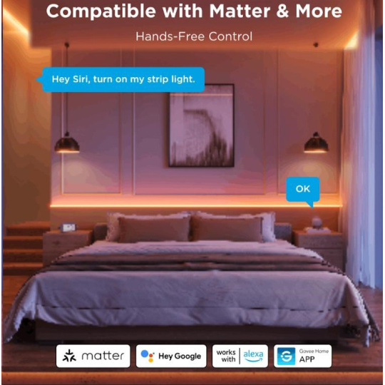 - Ovládání přes aplikaci Govee Home, ovládání hlasem – Siri, Google Assistant, Alexa