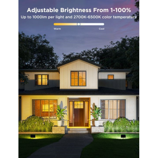 Venkovní úsporná LED reflektory Smart Flood Lights 2 udělají z vaší zahrady designový skvost. Díky technologii RGBICWW umí svítit až 1000 lm, zobrazit až 16 milionů barev. Určitě si vyberete z více než 50 režimů osvětlení a při poslouchaní oblíbené hudby si můžete zvolit také ze 6 rytmických režimů. Nebo si prostě nastavte svoje vlastní barevné kombinace podle libosti na každém ze 4 LED světel. Příkazy můžete zadat také hlasem přes Siri, Amazon Alexa nebo Google Assistant nebo přes aplikaci Govee Home na chytrém telefonu nebo tabletu. Nově světla podporují Matter, takže nativně podporují i Apple Homekit. Světlo má celkovou délku skoro 16 metrů a jeho instalace je velice jednouchá. Pomocí časovače můžete světla zapínat a vypínat automaticky podle západu a východu slunce. Světla mají index ochrany proti vodě IP66 (kromě zdrojového adaptéru) s provozní teplotou od -20°C do 40°C.