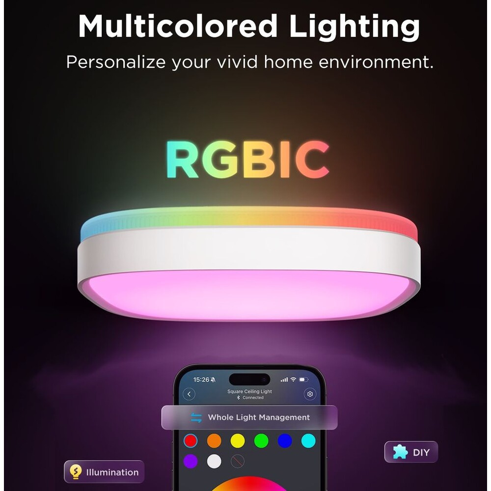 Govee RGBICWW Smart čtverhranné stropní světlo 2400lm 30cm Matter