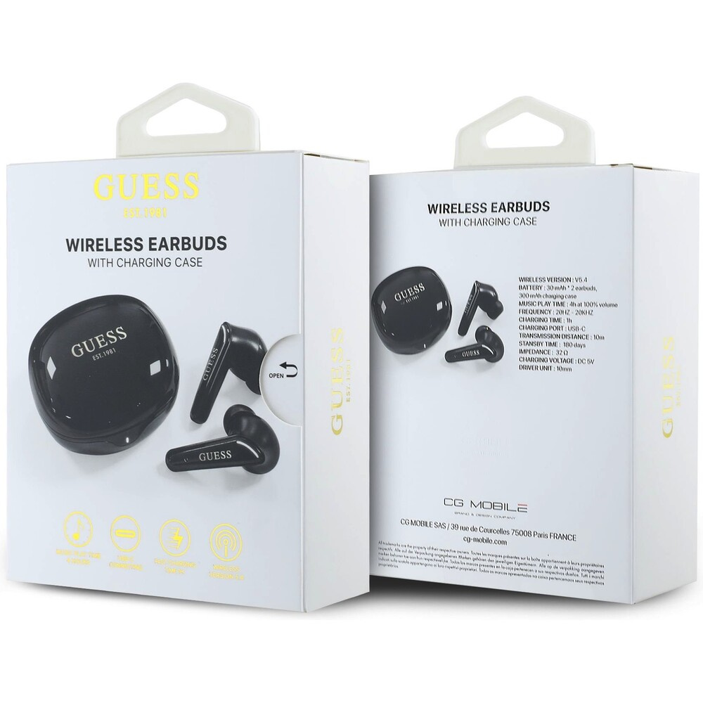 Guess Glossy Classic Logo TWS bezdrátová sluchátka černá