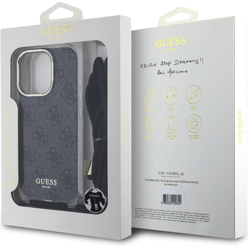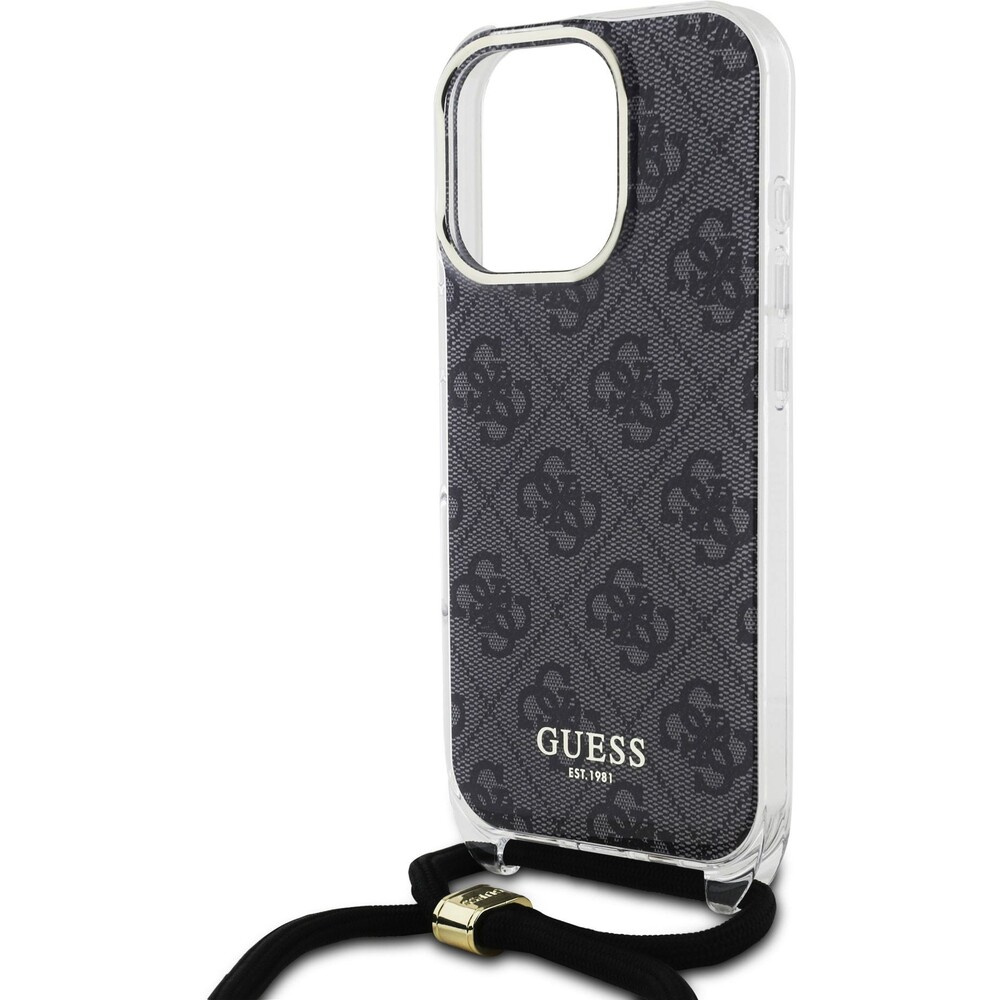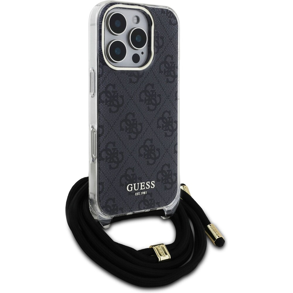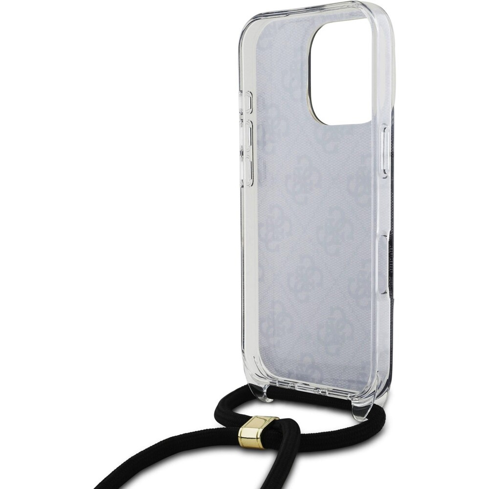 Guess IML 4G Printed Crossbody Popruh kryt iPhone 16 Pro černý