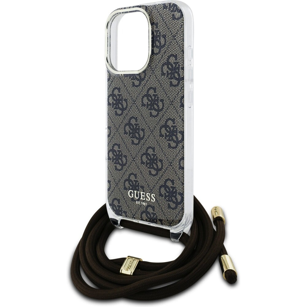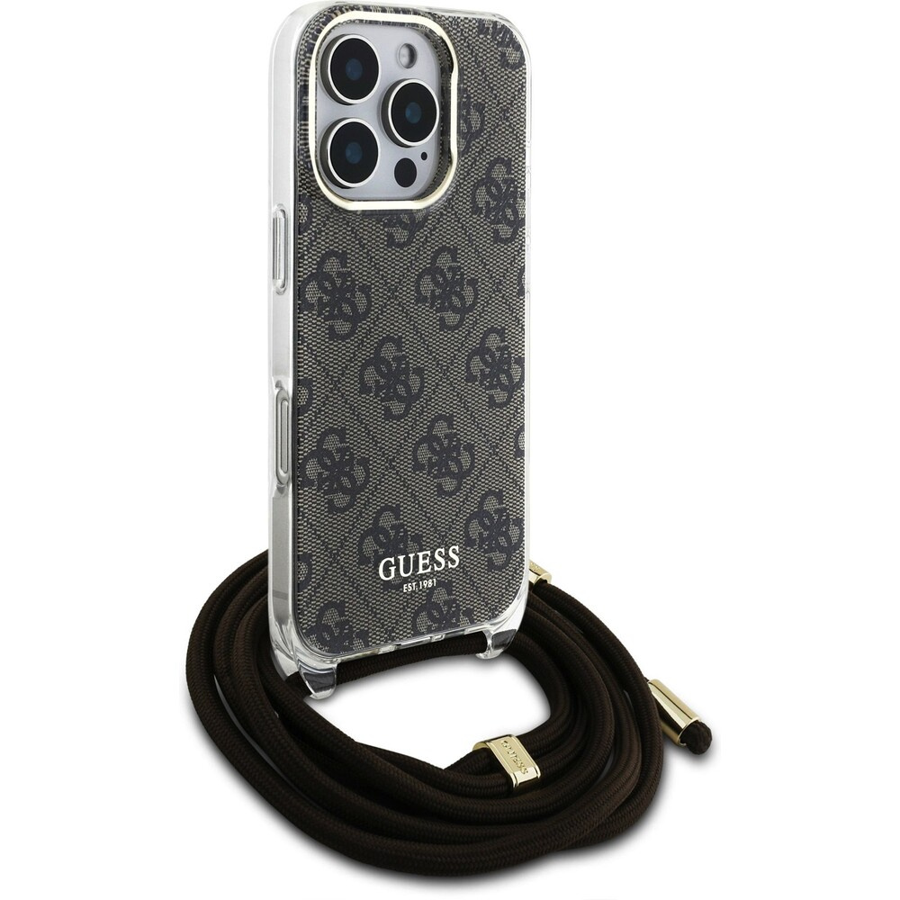 Guess IML 4G Printed Crossbody Popruh kryt iPhone 16 Pro hnědý