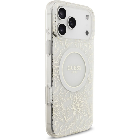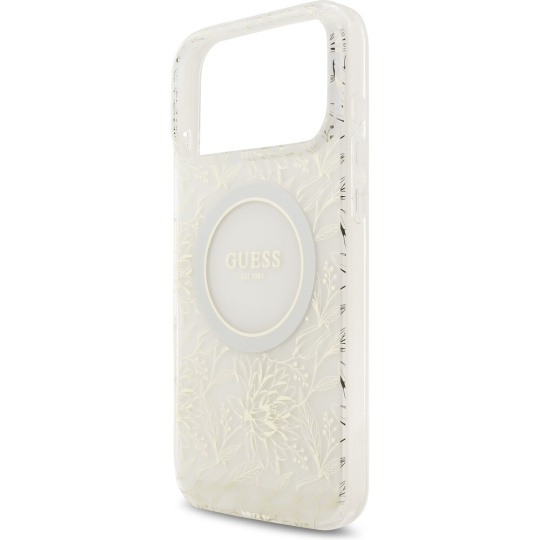Guess IML Flowers Allover Strap MagSafe kryt iPhone 17 Pro Max bílý
