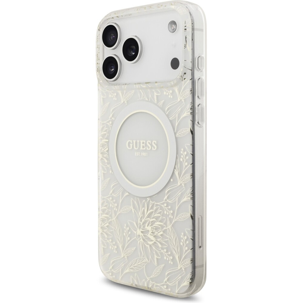Guess IML Flowers Allover Strap MagSafe kryt iPhone 17 Pro Max bílý