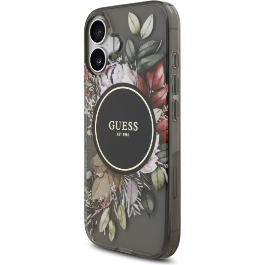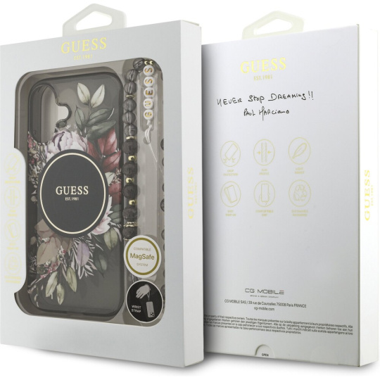 Guess IML Flowers Strap MagSafe kryt iPhone 17 černý