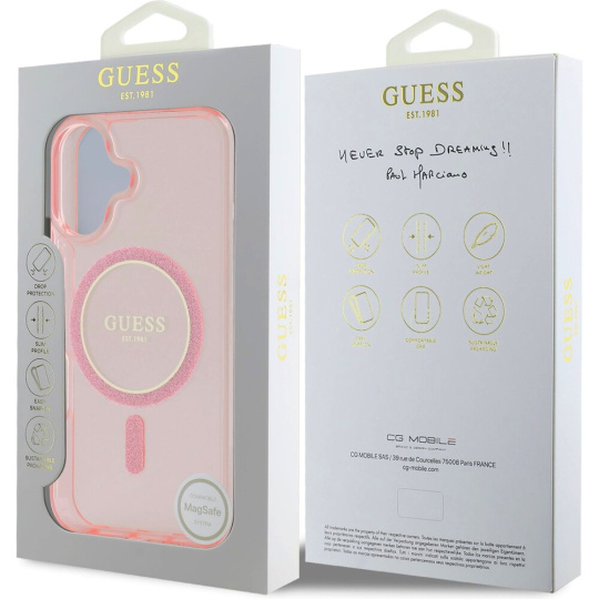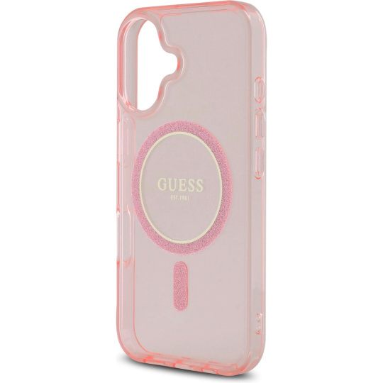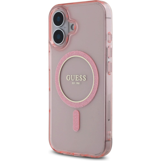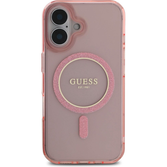 Guess IML Glitter Ring MagSafe kryt pro iPhone 16 růžový