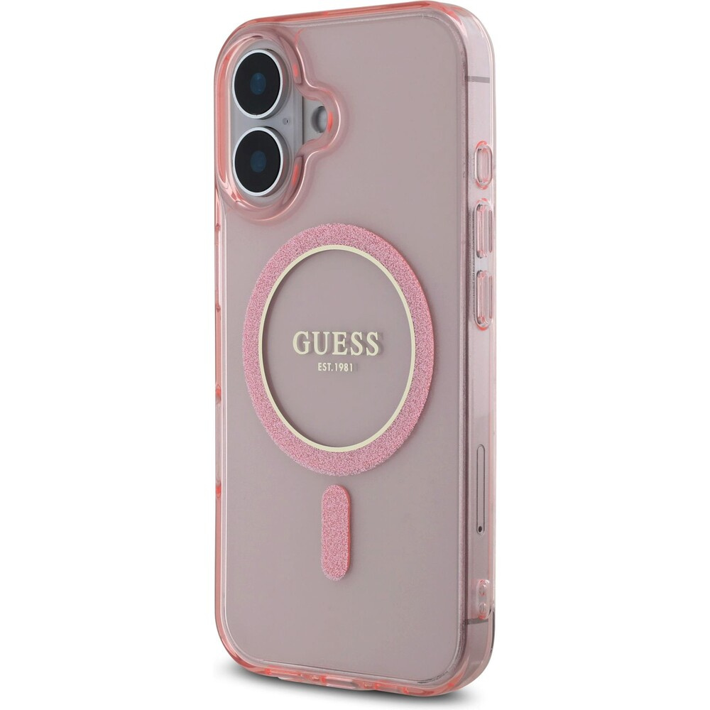 Guess IML Glitter Ring MagSafe kryt pro iPhone 16 růžový