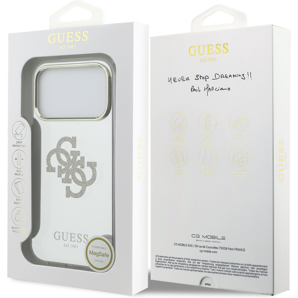 Guess PC/TPU Mirror 4G Glitter Logo MagSafe kryt iPhone 17 Pro Max zlatý
