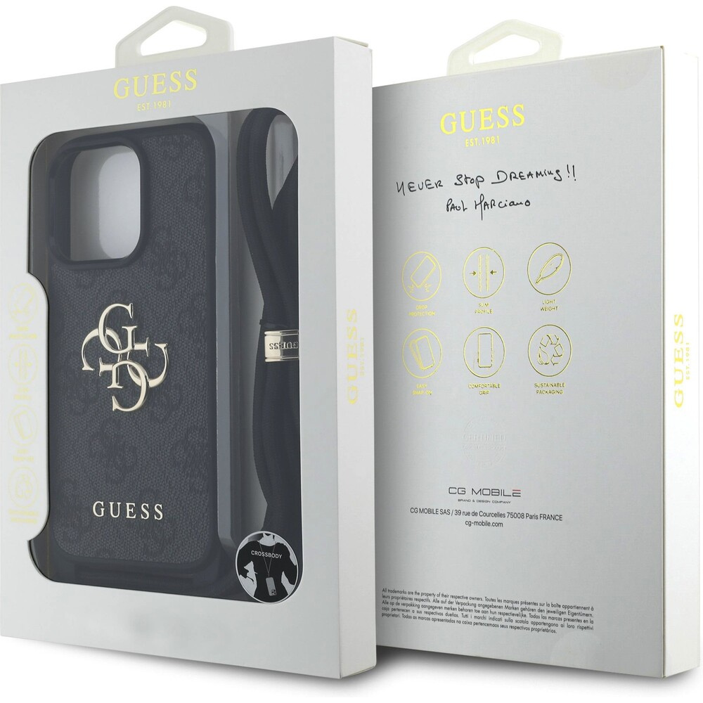Guess PU 4G Metal Logo Crossbody popruh kryt iPhone 15 Pro Max černý