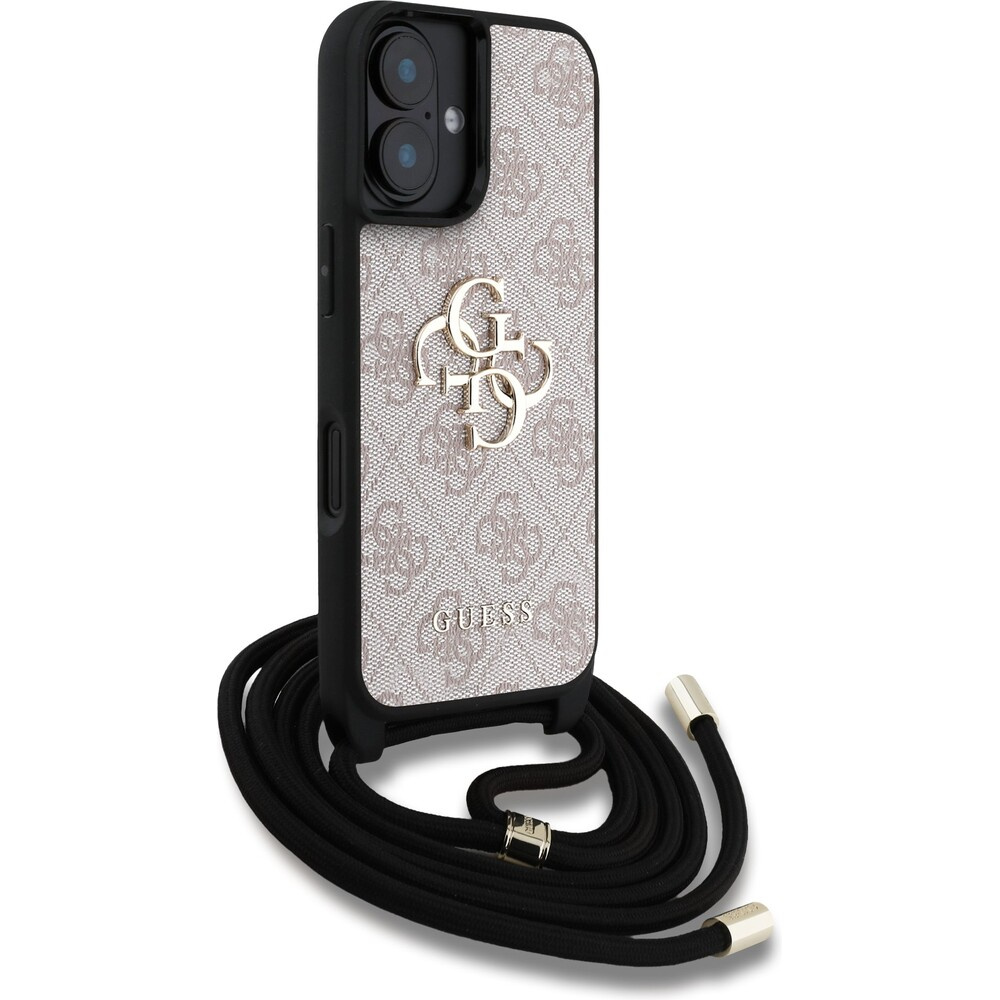 Guess PU 4G Metal Logo Crossbody popruh kryt iPhone 16 růžový