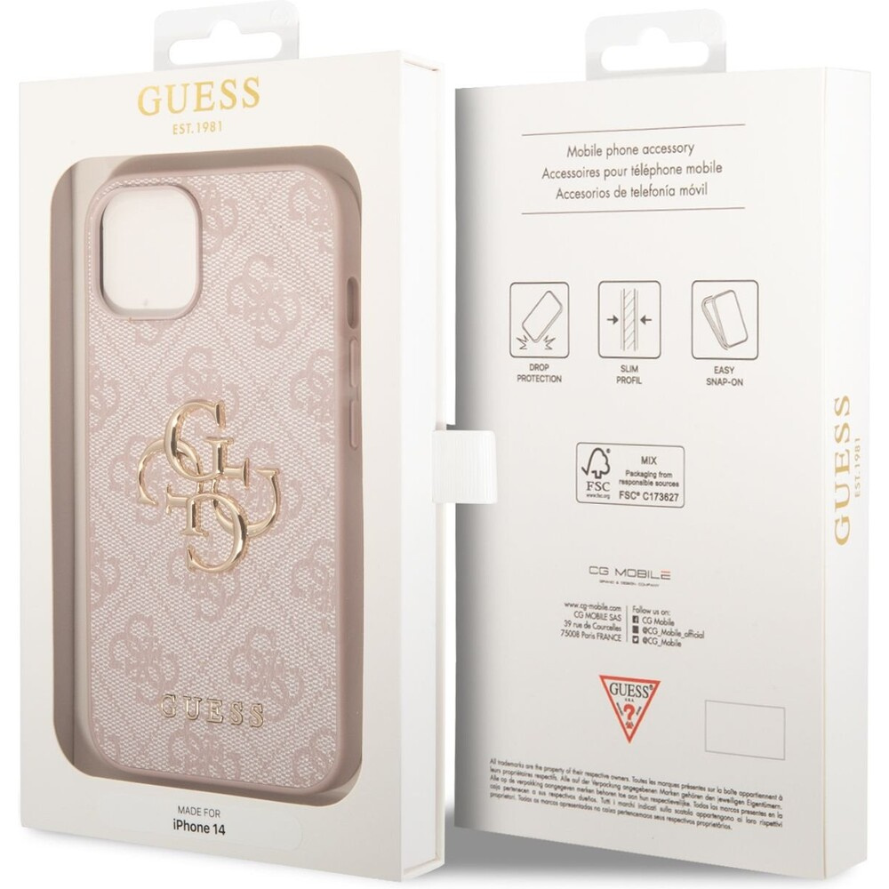 Guess PU 4G Metal Logo kryt iPhone 14 růžový
