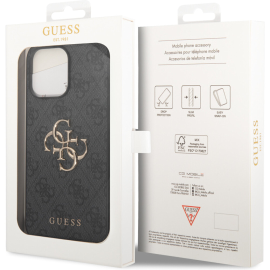 Guess PU 4G Metal Logo kryt iPhone 15 Pro Max šedý