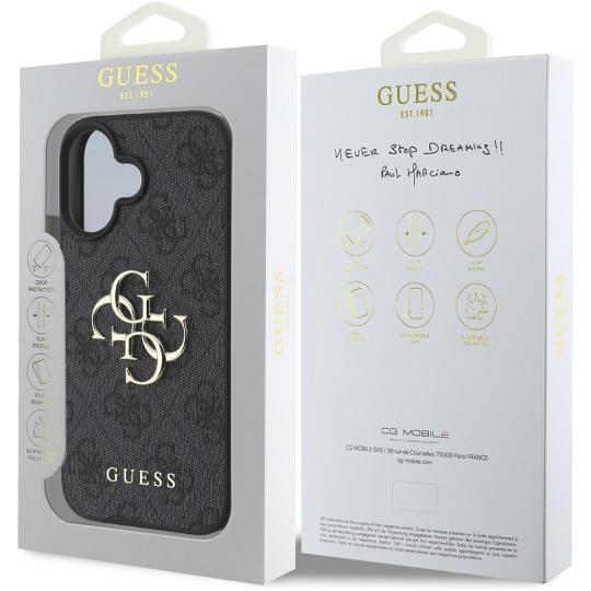 Guess PU 4G Metal Logo kryt pro iPhone 16 šedý