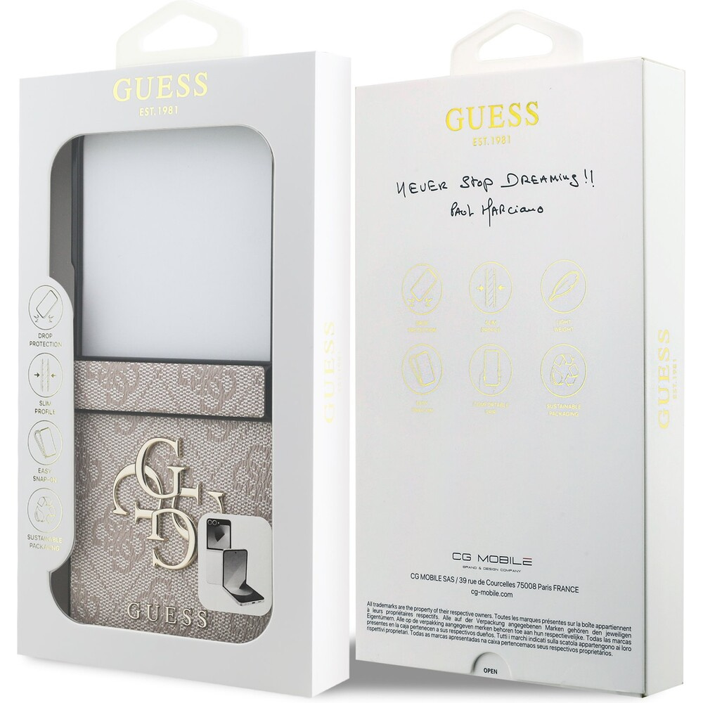 Guess PU 4G Metal Logo kryt Samsung Galaxy Z Flip 7 růžový
