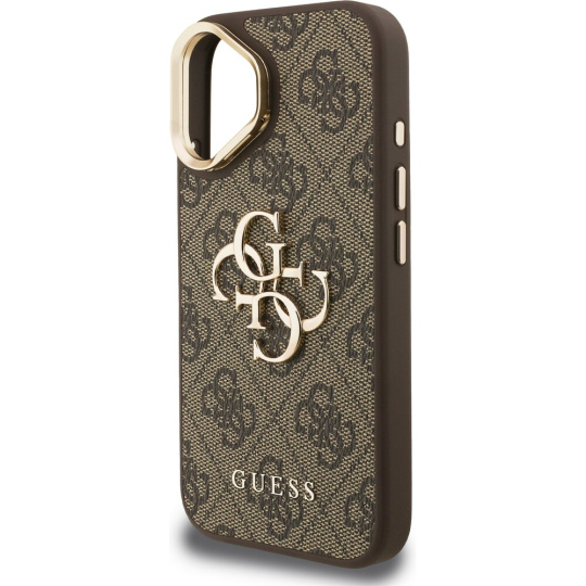 Guess PU 4G Metal Logo Stand Camera Frame kryt iPhone 16 hnědý
