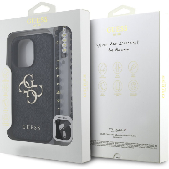 Guess PU 4G Metal Logo Strap kryt iPhone 15 Pro Max černý