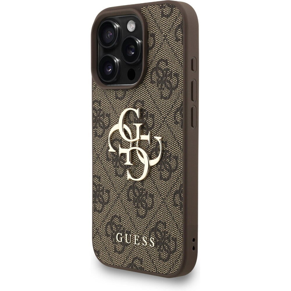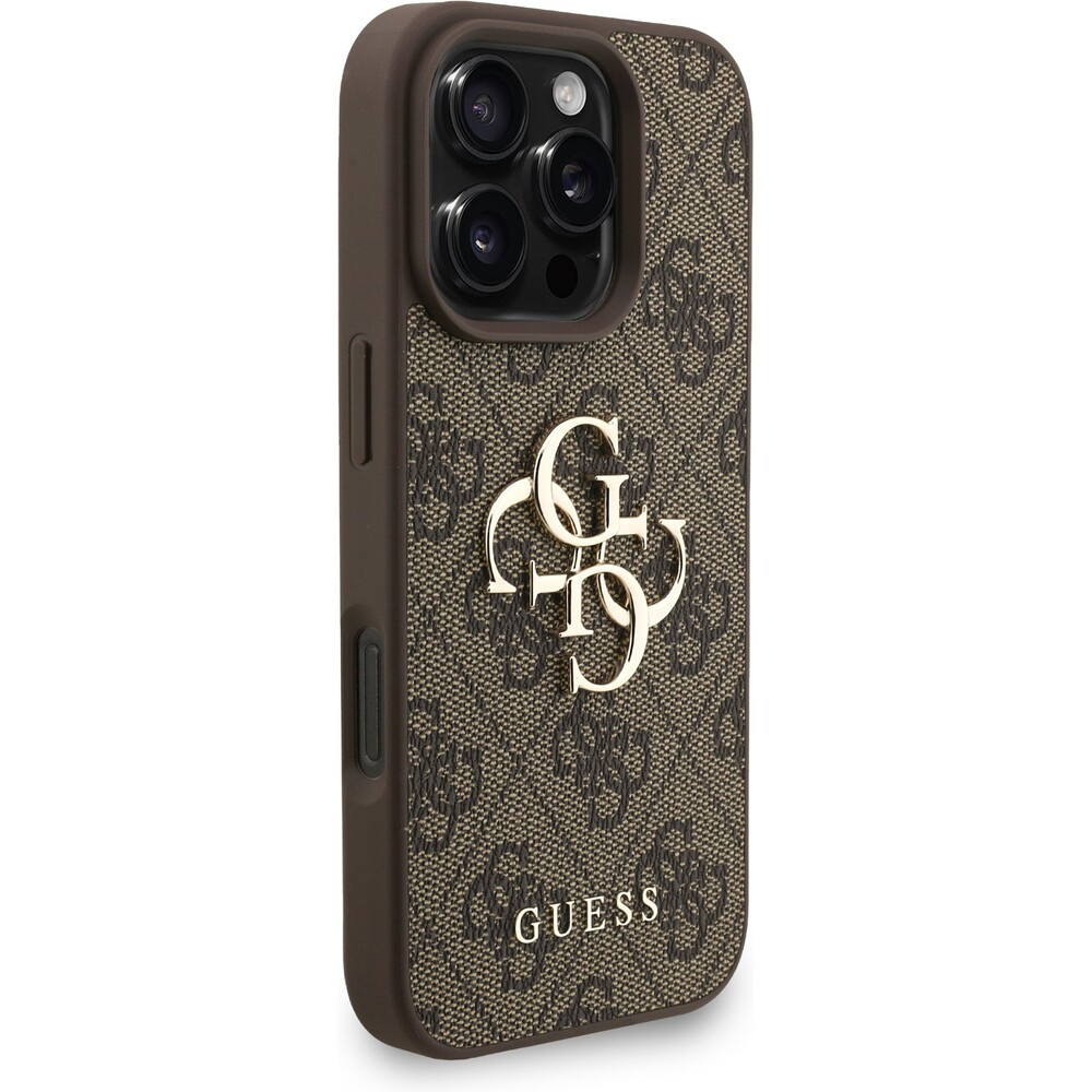 Guess PU 4G Metal Logo Strap kryt iPhone 16 Pro Max hnědý