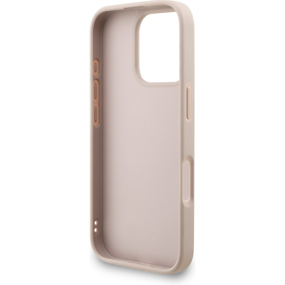 Guess PU 4G Metal Logo Strap kryt iPhone 16 Pro růžový