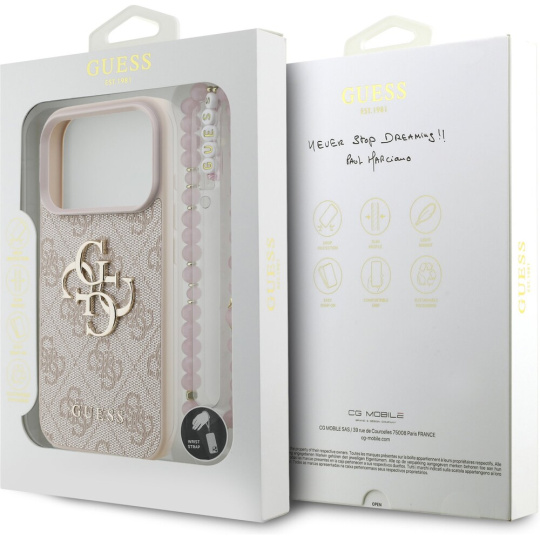 Guess PU 4G Metal Logo Strap kryt iPhone 17 Pro růžový