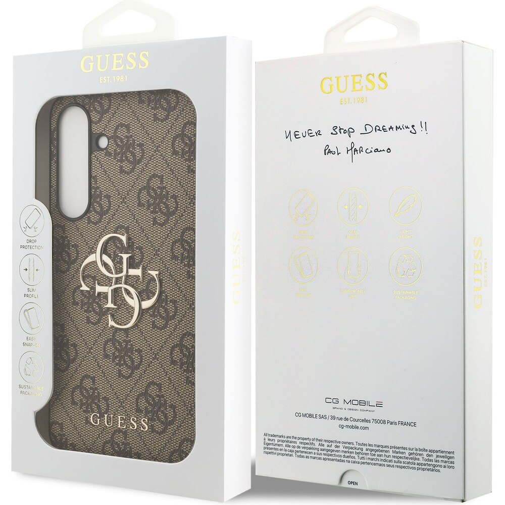 Guess PU 4G Metal Logo Zadní Kryt pro Samsung Galaxy S25 FE hnědý