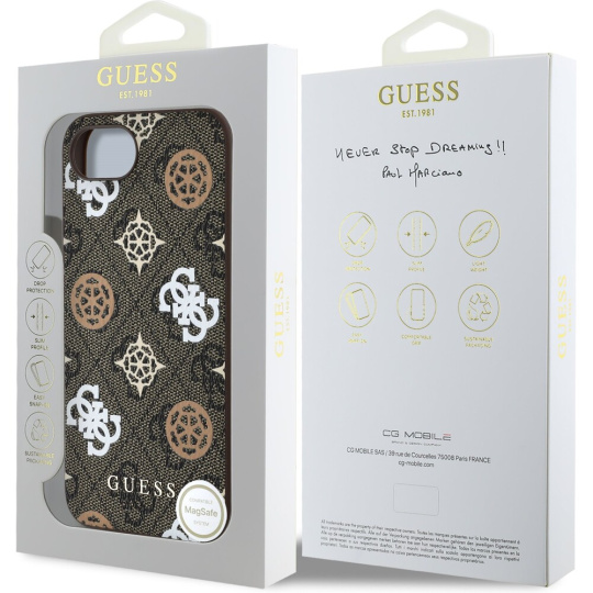 Guess PU 4G Peony MagSafe kryt iPhone 16e hnědý