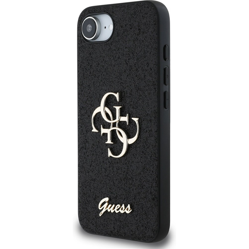 Guess PU Fixed Glitter 4G Metal Logo kryt iPhone 16e černý