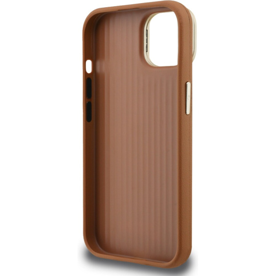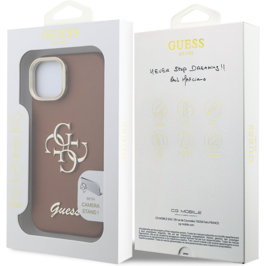 Guess PU Grained 4G Logo Stand Camera Frame kryt iPhone 14 hnědý