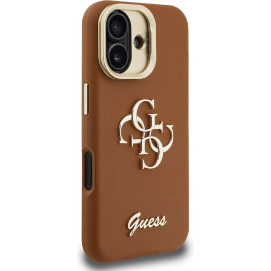 Guess PU Grained 4G Logo Stand Camera Frame kryt iPhone 16 hnědý