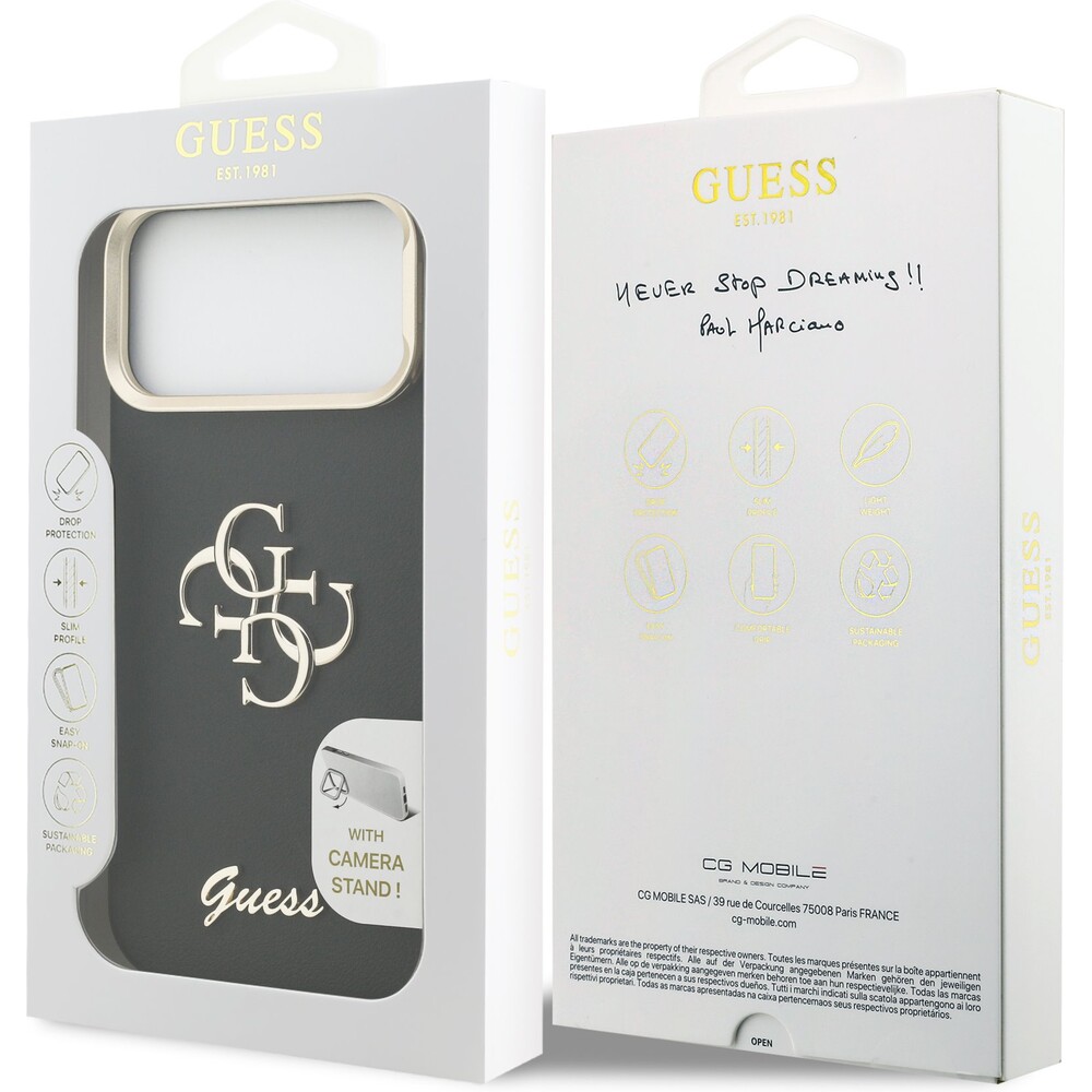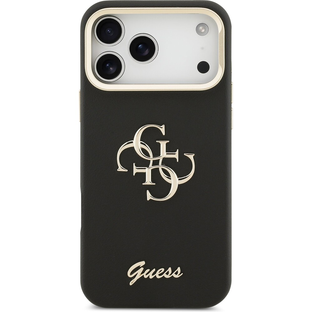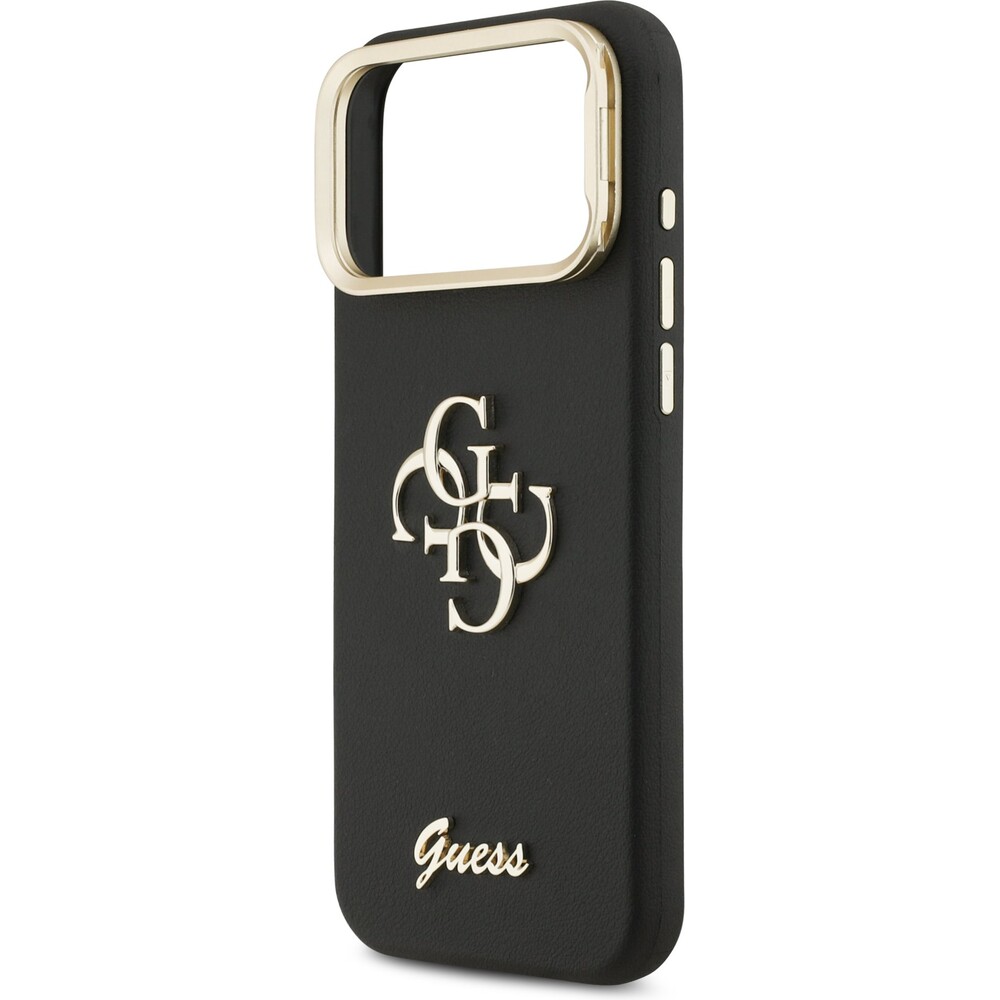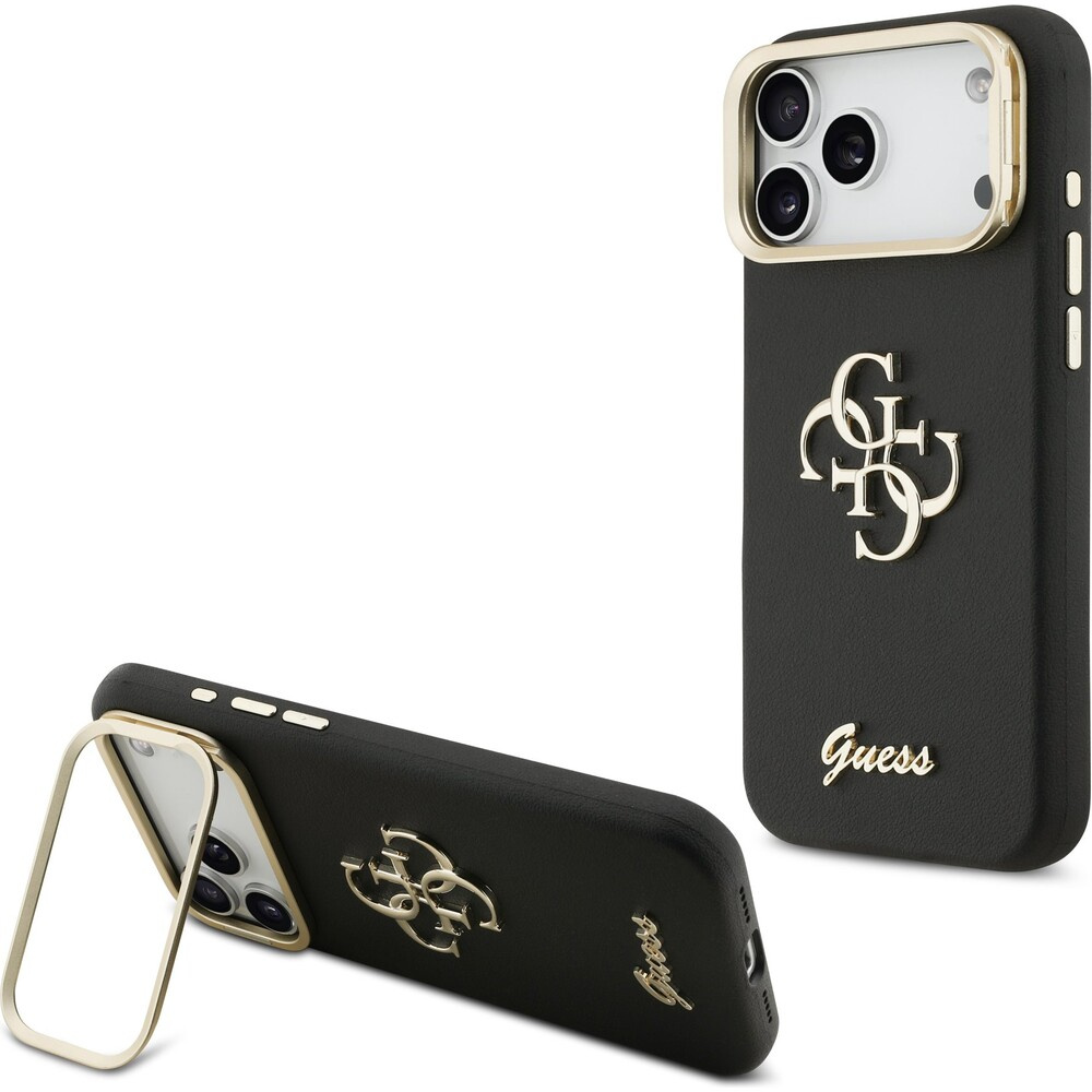Guess PU Grained 4G Logo Stand Camera Frame kryt iPhone 17 Pro Max černý