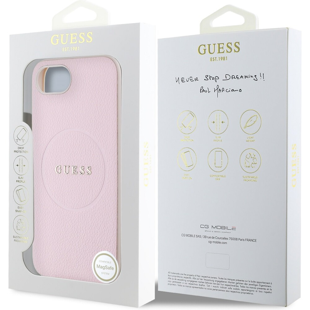 Guess PU Grained Classic Logo MagSafe kryt iPhone 16e růžový