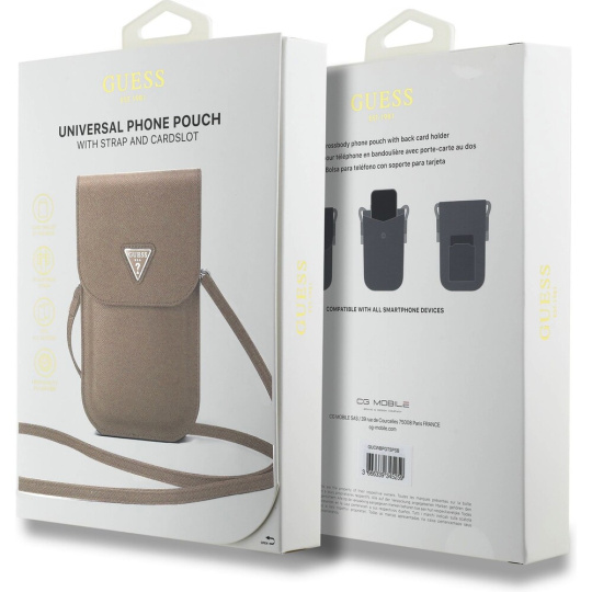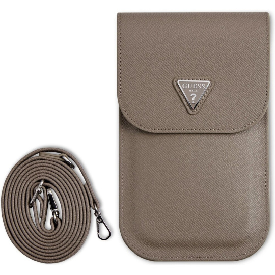 Guess PU Grained Triangle Logo taška na telefon hnědá