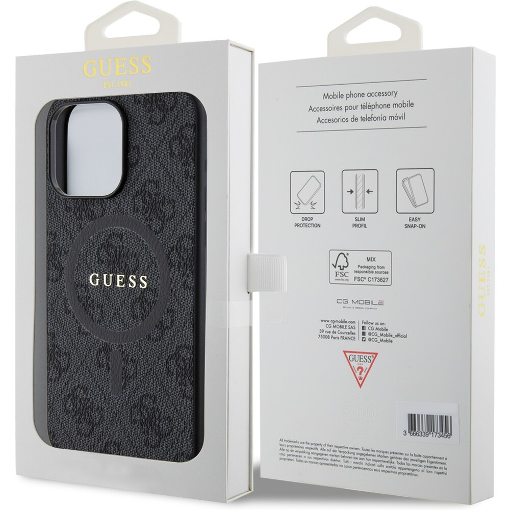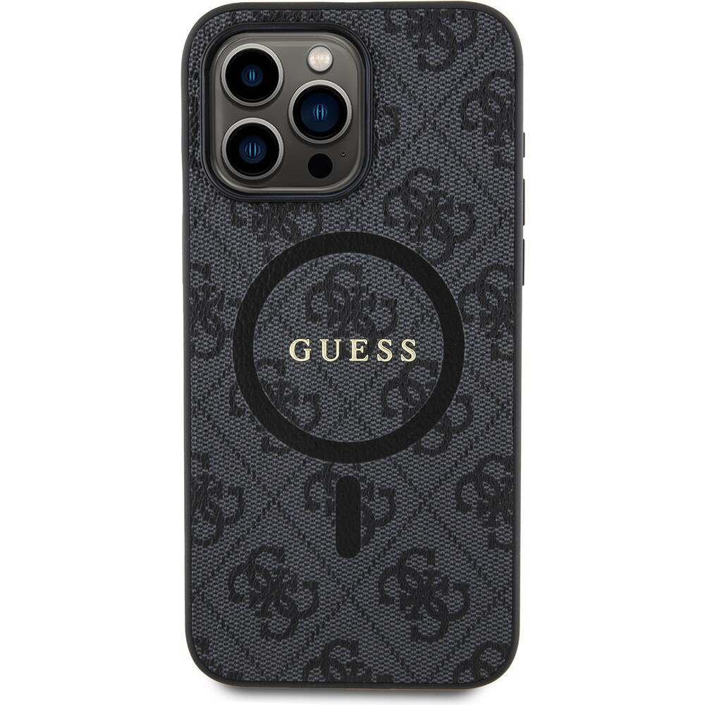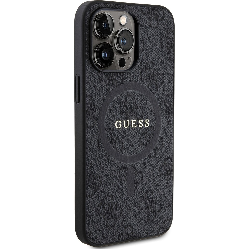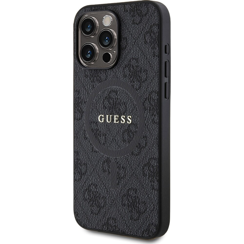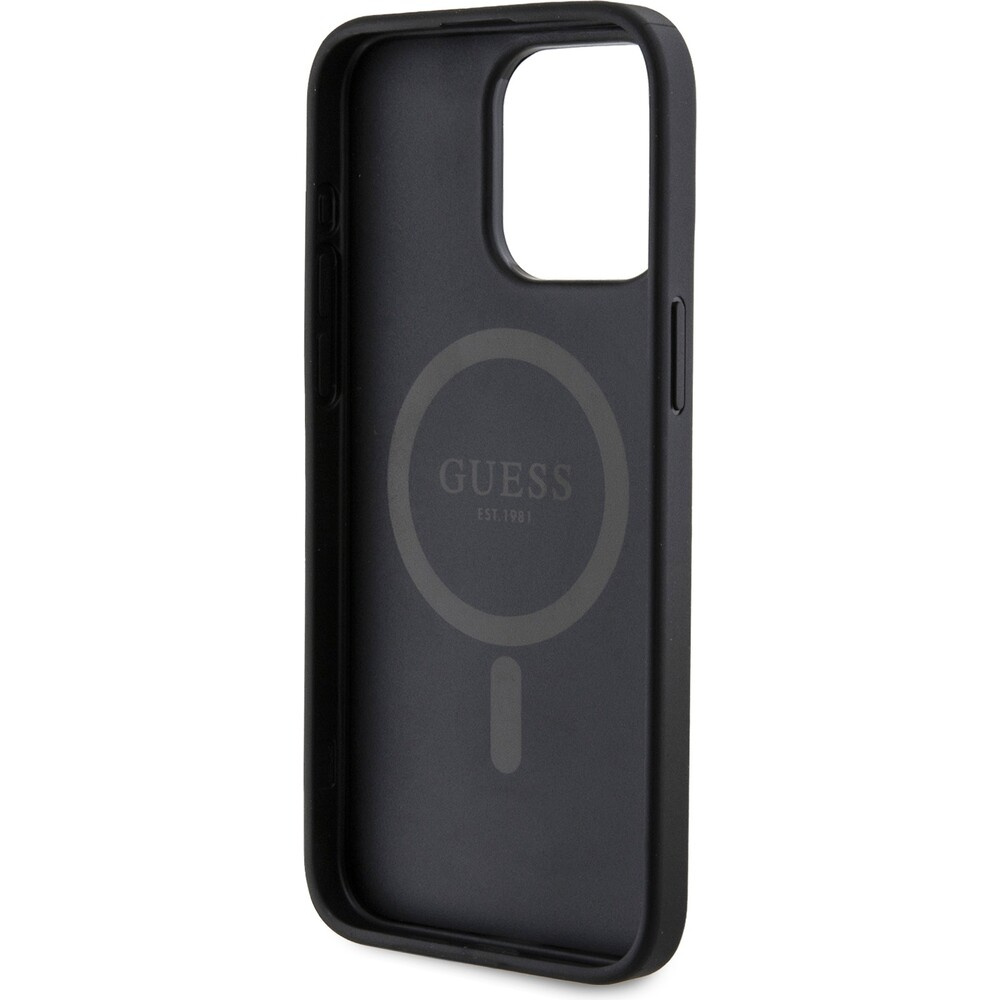 Guess PU Leather 4G Colored Ring MagSafe kryt iPhone 15 Pro Max černý