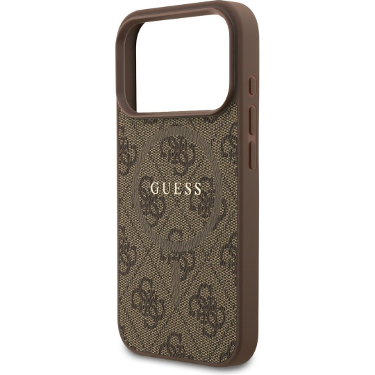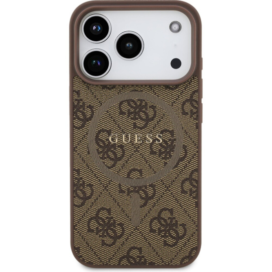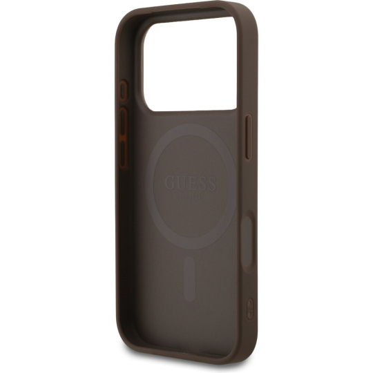 Guess PU Leather 4G Colored Ring MagSafe Zadní Kryt pro iPhone 17 Pro hnědý