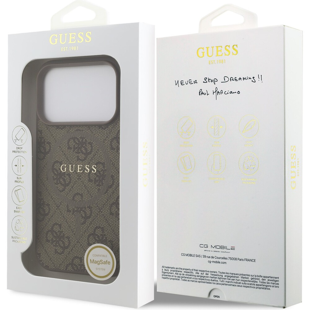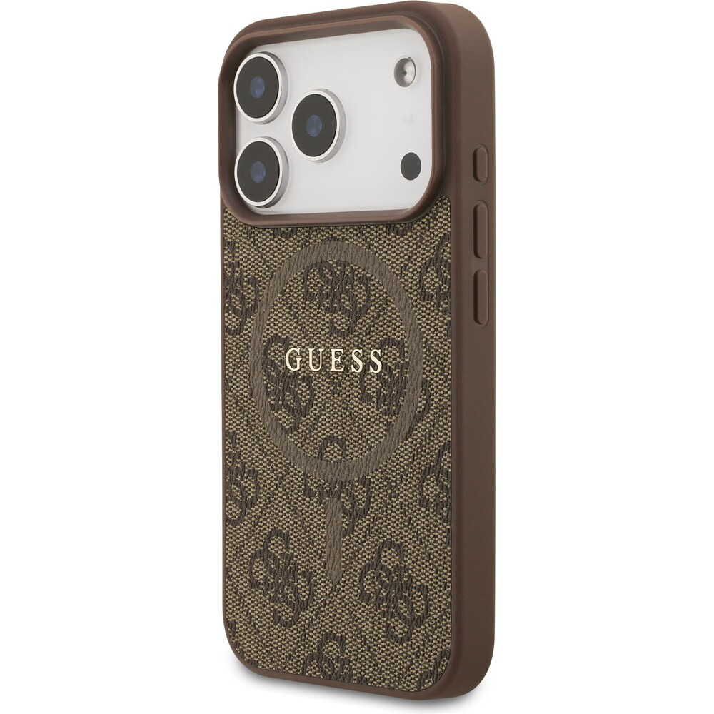 Guess PU Leather 4G Colored Ring MagSafe Zadní Kryt pro iPhone 17 Pro hnědý
