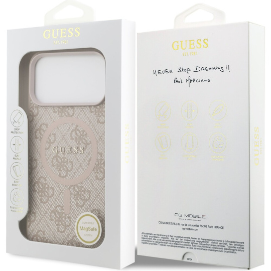 Guess PU Leather 4G Colored Ring MagSafe Zadní Kryt pro iPhone 17 Pro Max růžový
