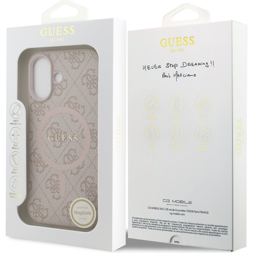 Guess PU Leather 4G Colored Ring MagSafe Zadní Kryt pro iPhone 17 růžový