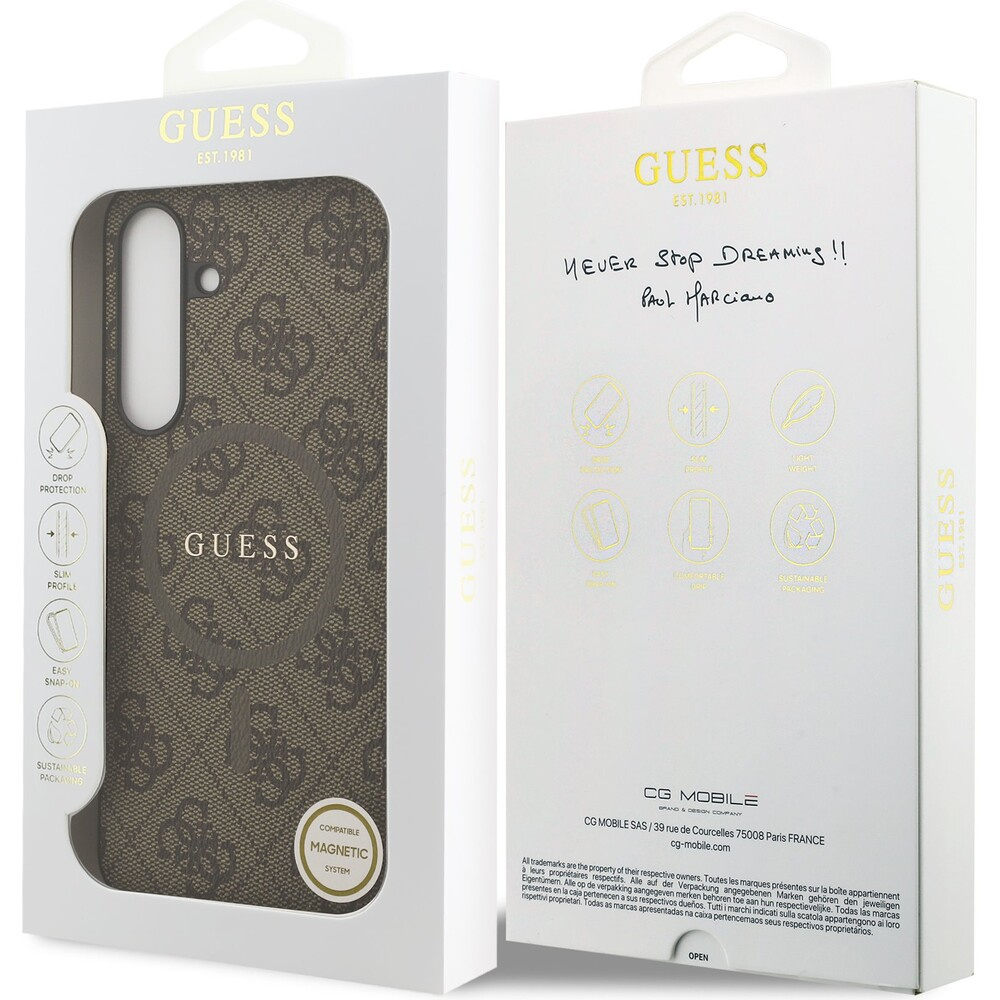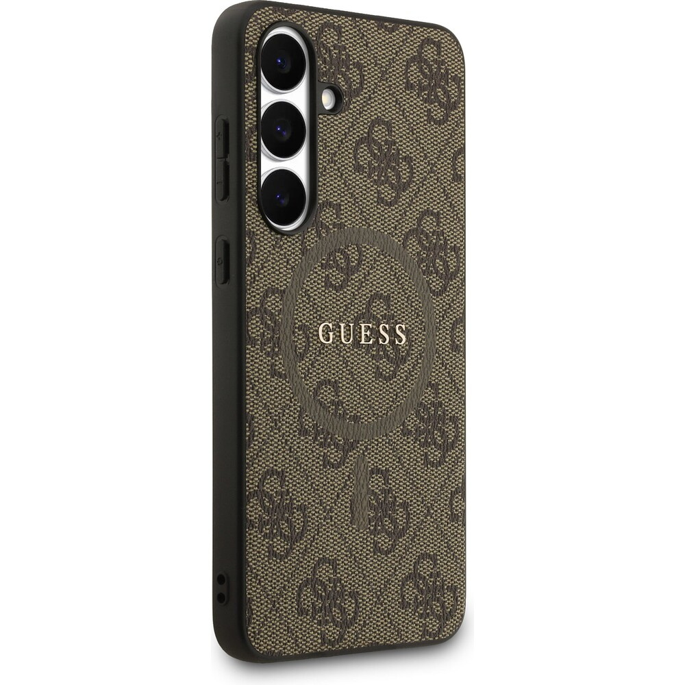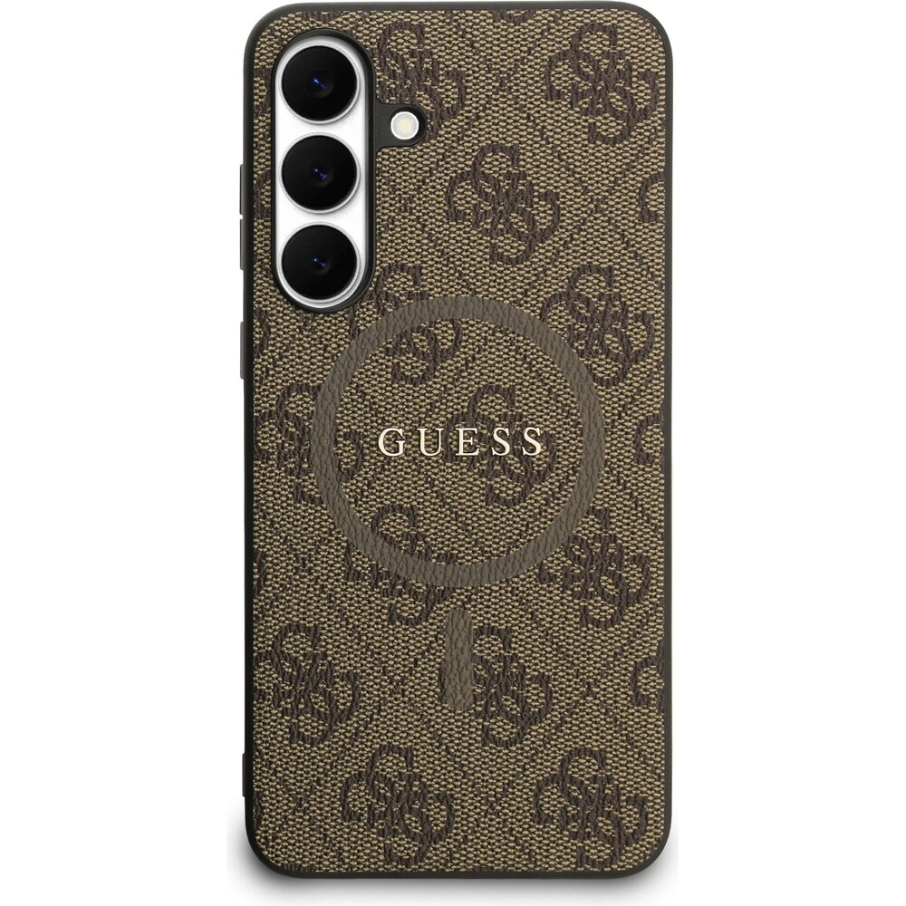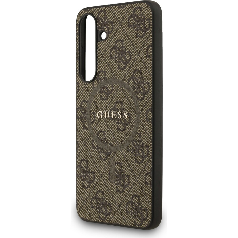 Guess PU Leather 4G Colored Ring MagSafe Zadní Kryt pro Samsung Galaxy S25 FE hnědý