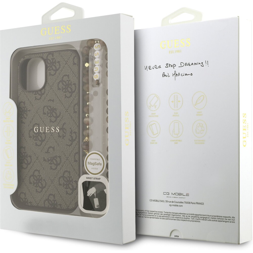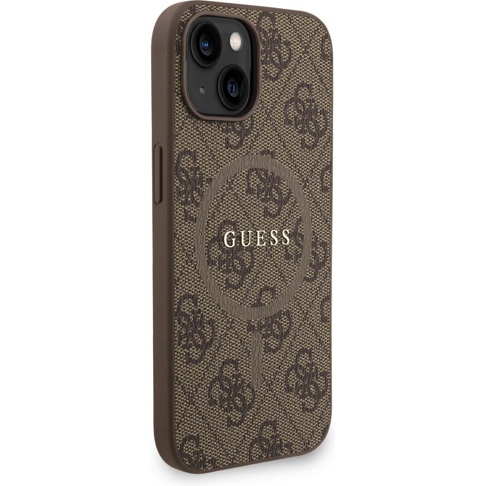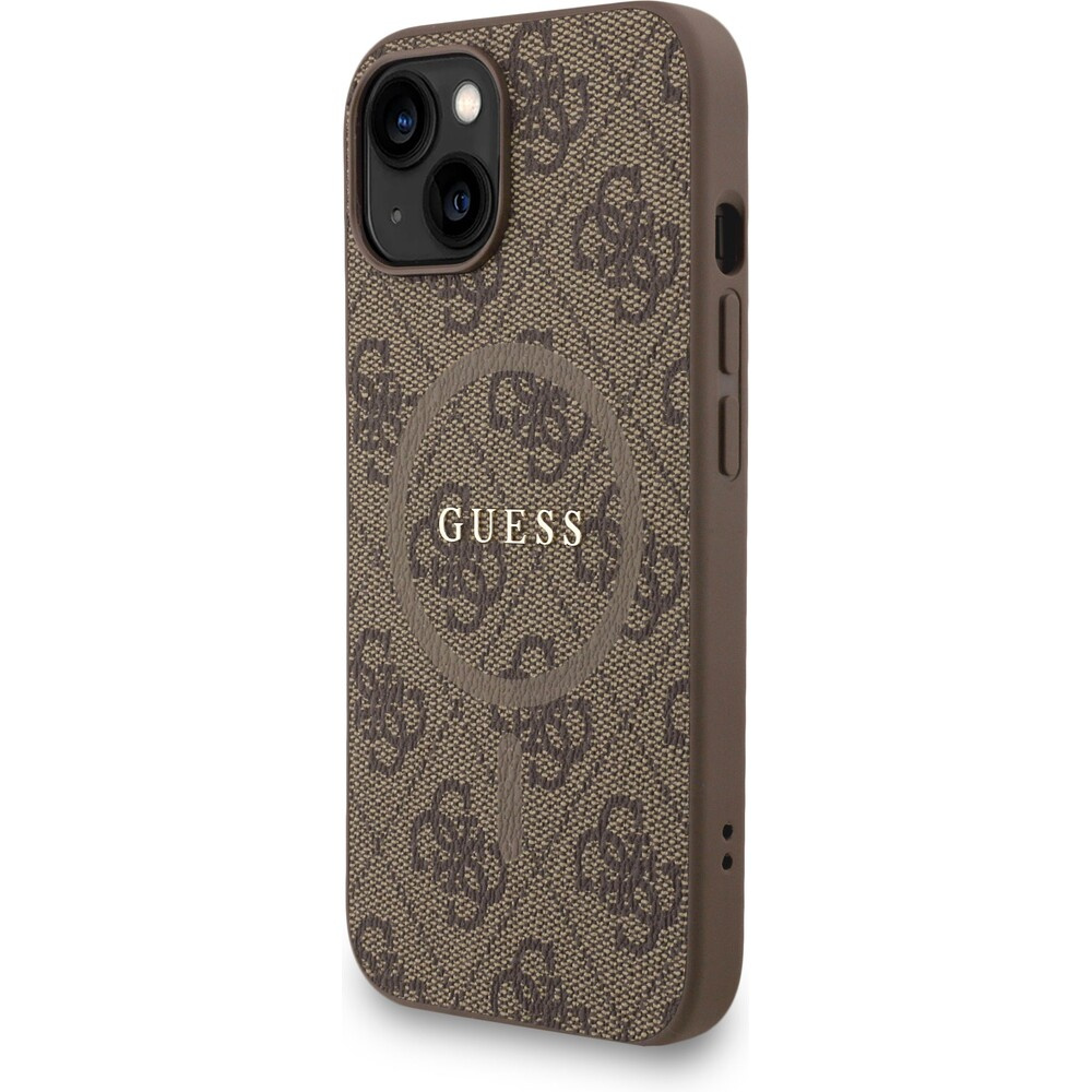 Guess PU Leather 4G Colored Ring Strap MagSafe kryt iPhone 15 hnědý