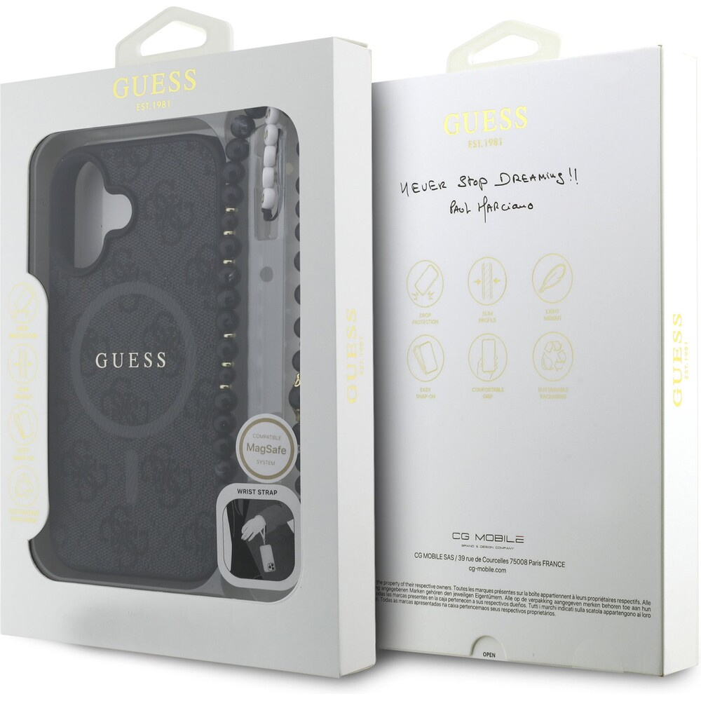 Guess PU Leather 4G Colored Ring Strap MagSafe kryt iPhone 16 černý