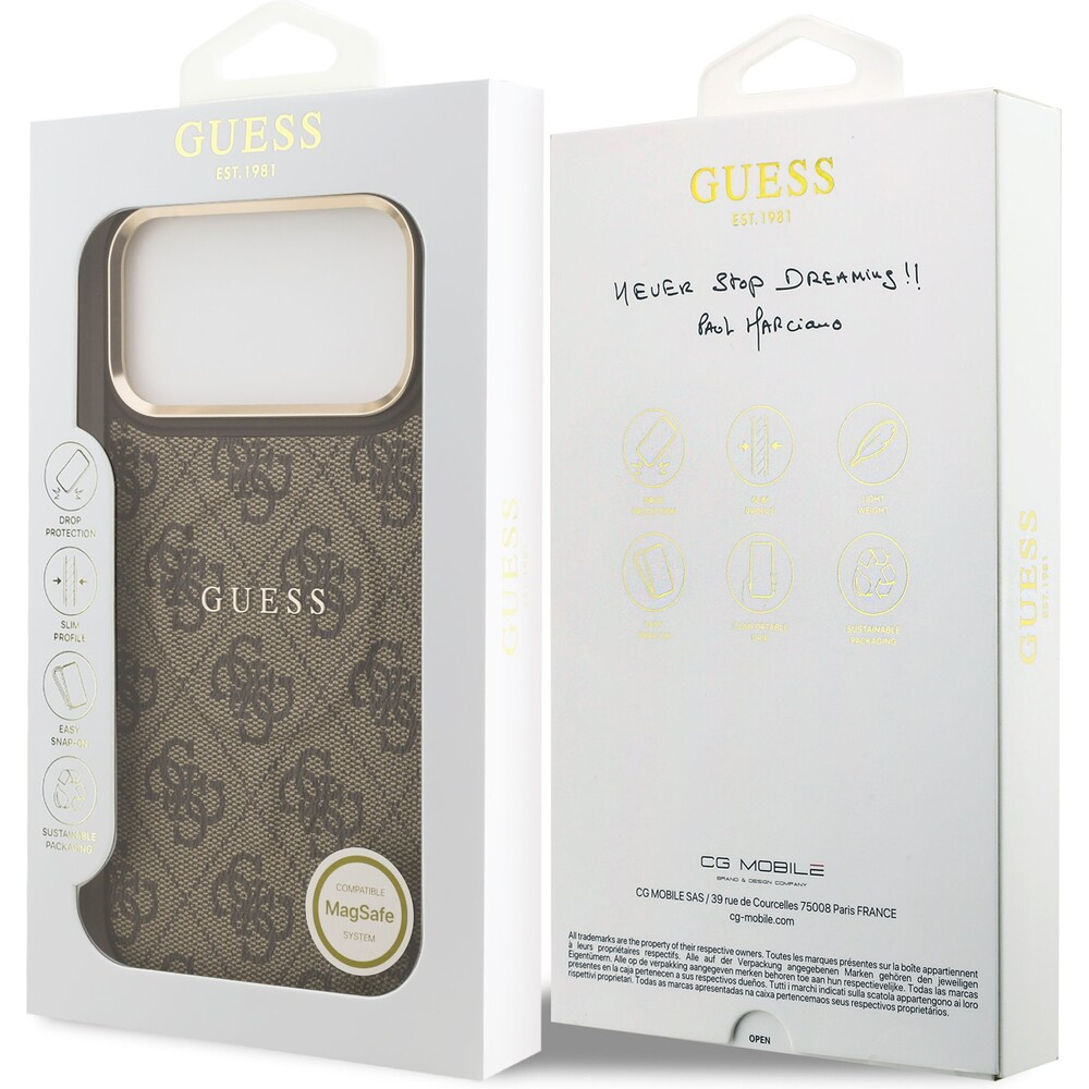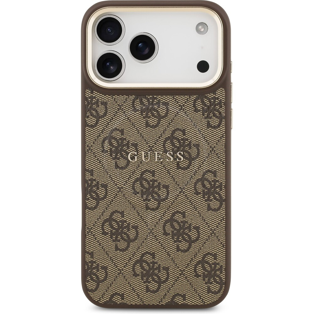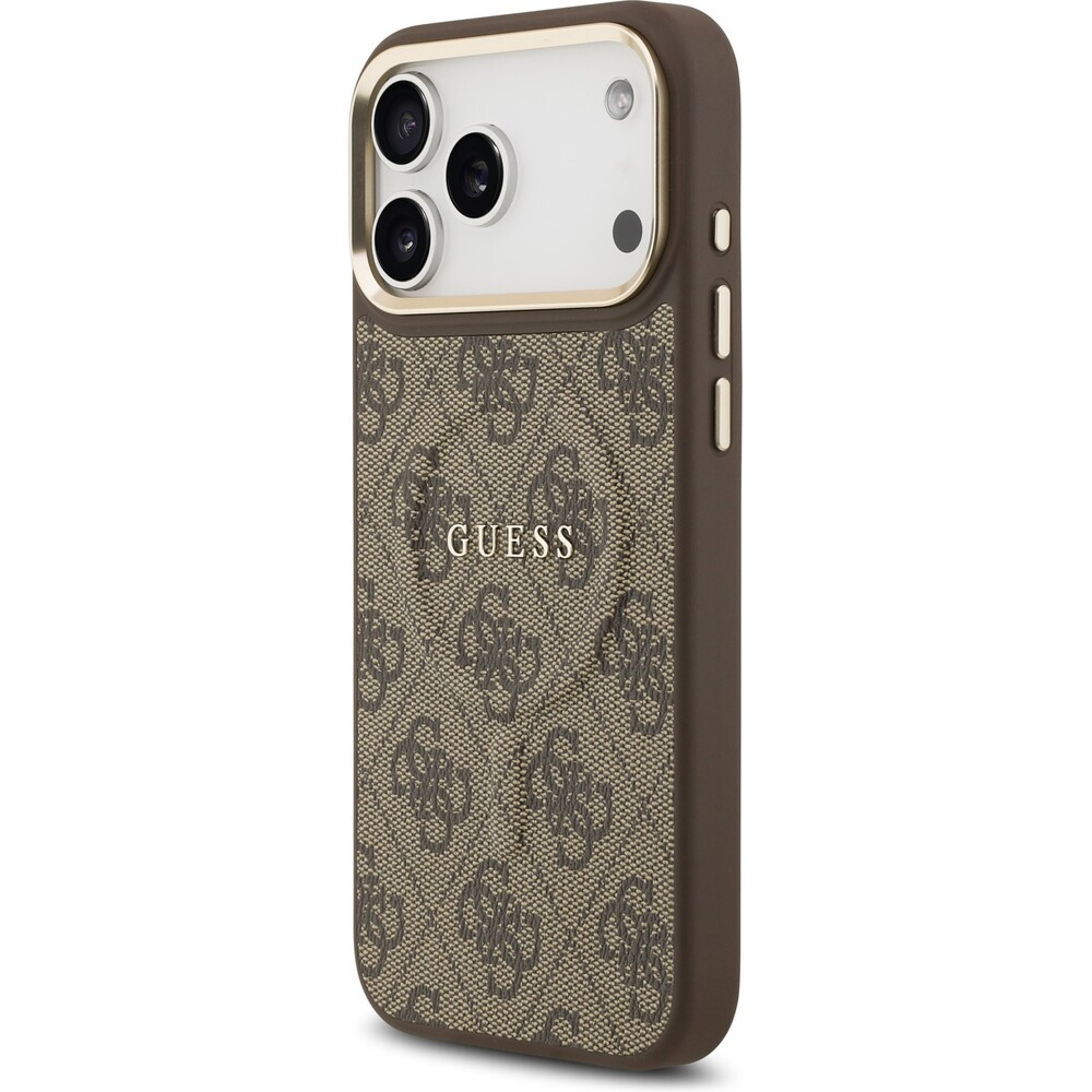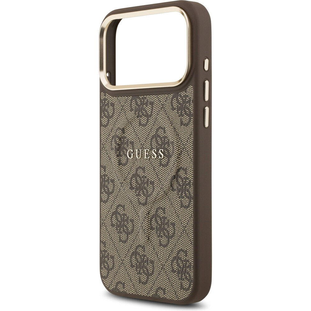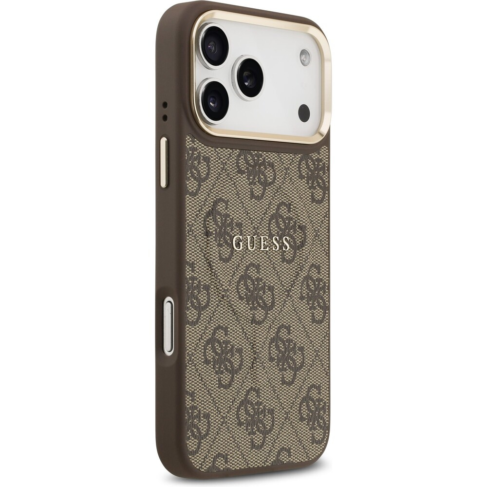 Guess PU Leather 4G Gold Frame MagSafe kryt iPhone 17 Pro Max hnědý