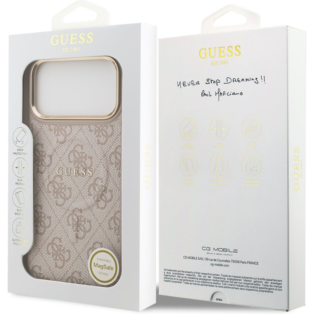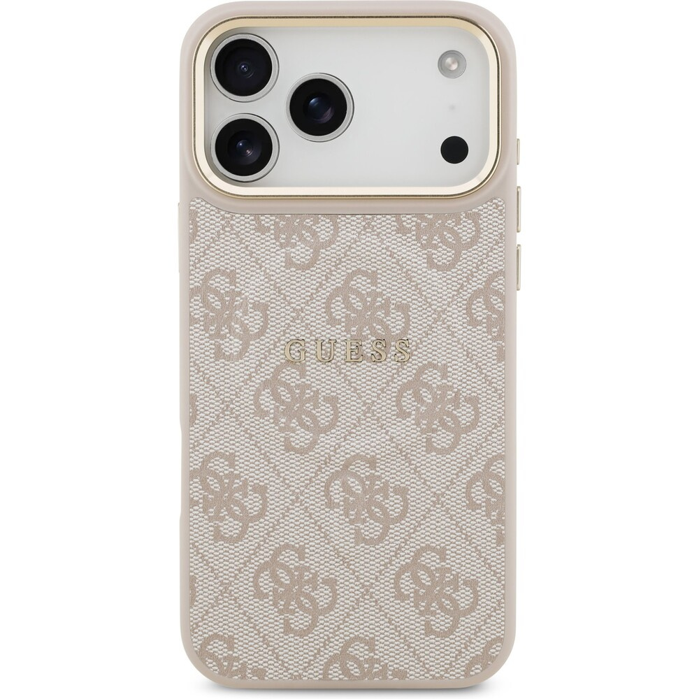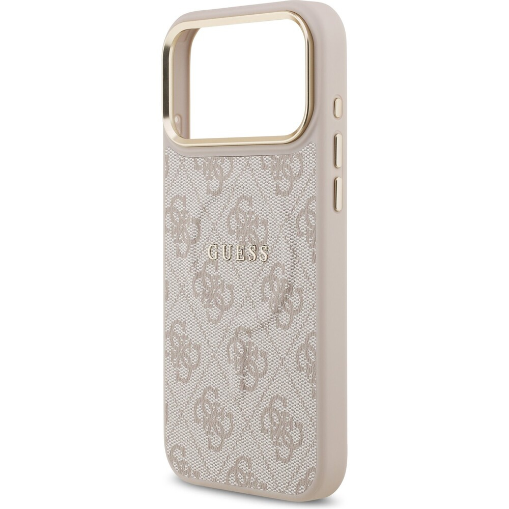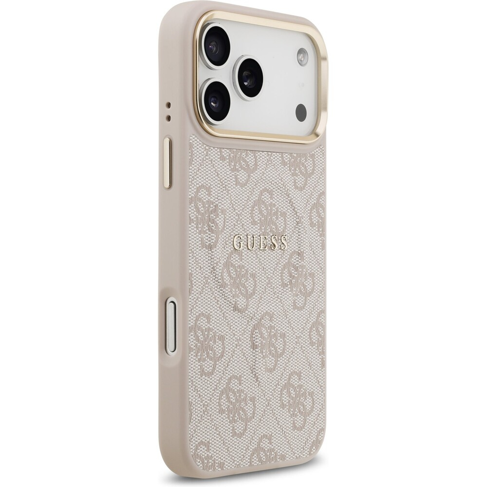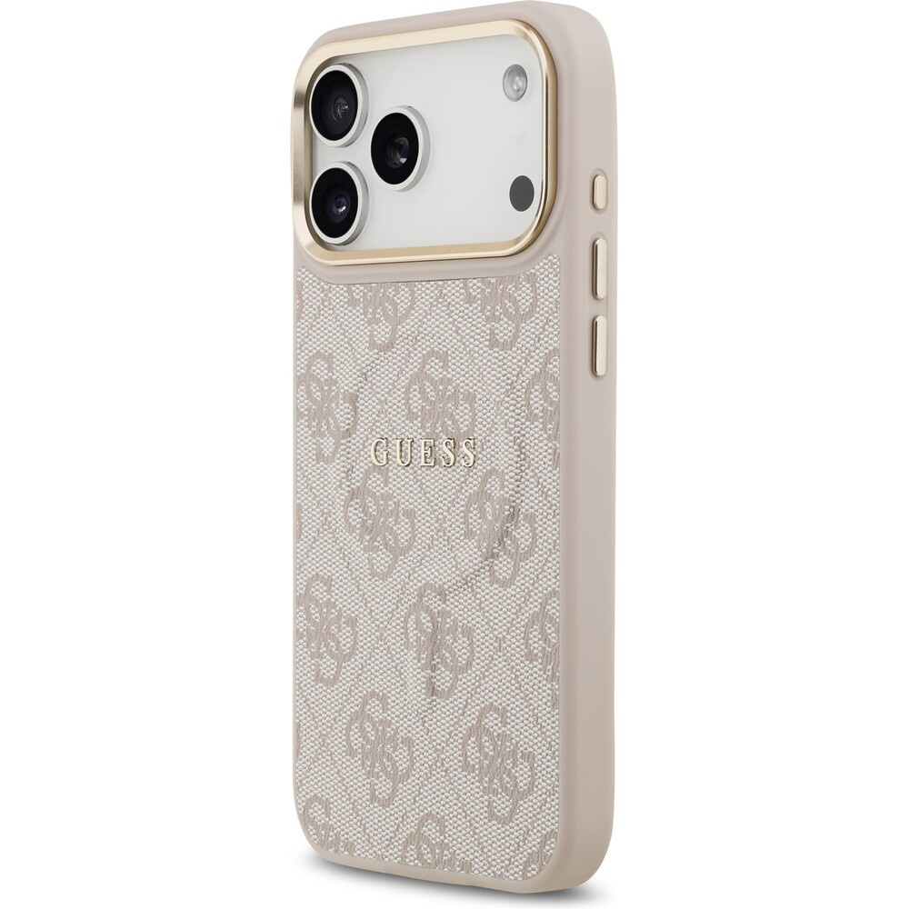 Guess PU Leather 4G Gold Frame MagSafe kryt iPhone 17 Pro Max růžový