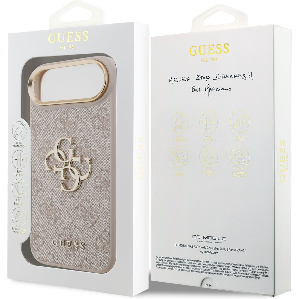 Guess PU Leather 4G Metal Logo Gold Frame kryt iPhone Air růžový